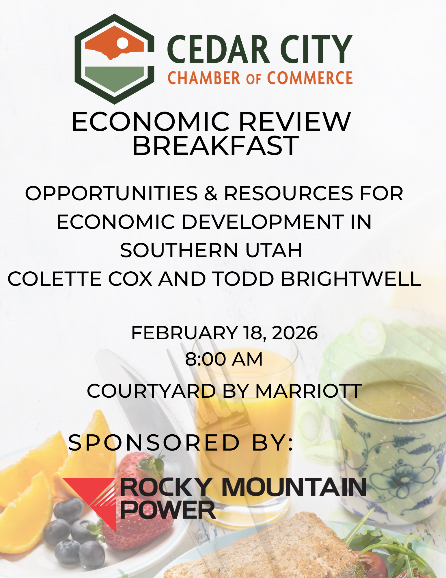 Colette Cox and Todd Brightwell will be here to share with us new Opportunities & Resources for Economic Development in Southern Utah.