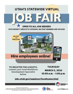 Utah's Statewide Virtual Job Fair- Hire employees online. Open to all job seekers.
